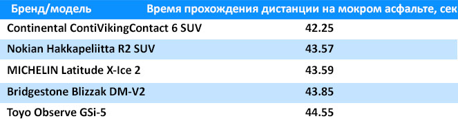 Наиболее управляемыми на мокром асфальте оказались автошины Континентал. По мнению специалистов из издания kolesa.kz, эти покрышки оптимально подойдут для эксплуатации в регионах с мягкой зимой, где в зимнее время дороги могут быть покрыты не только снегом и льдом, но и талой водой.