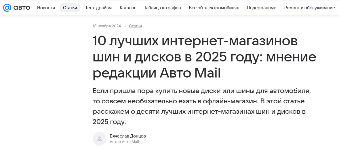 BS-Tyres.ru – в десятке лучших интернет-магазинов шин по версии «Авто Mail» и «Комсомольской Правды»