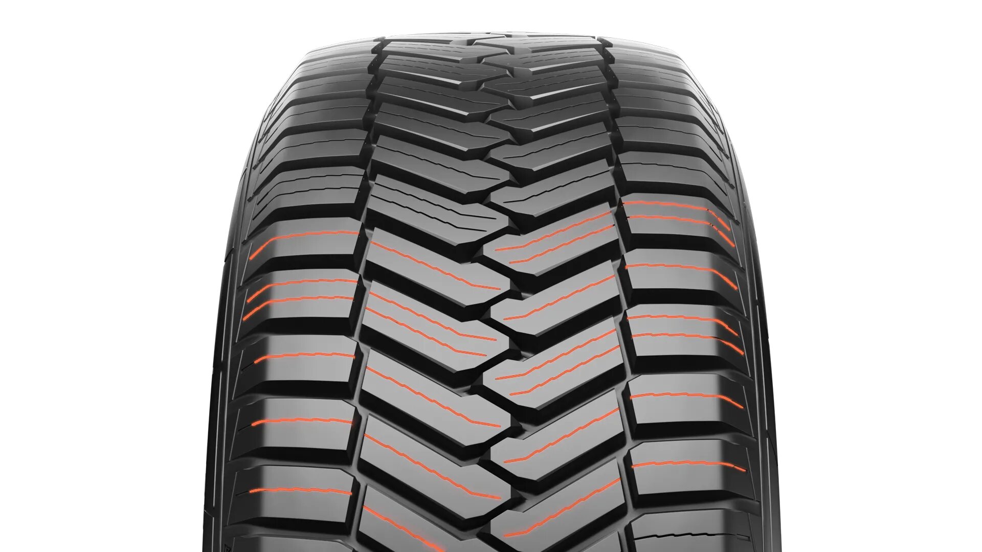 Использование кремния класса NANO в составе резиновой смеси значительно усилило характеристики авторезины на влажной поверхности. Эта технология способствует улучшению водоотведения и сокращает тормозной путь в неблагоприятную погоду. Прочное сцепление с влажным покрытием особенно приоритетно для поставок грузов в межсезонье и зимой, когда дороги становятся особенно коварными.