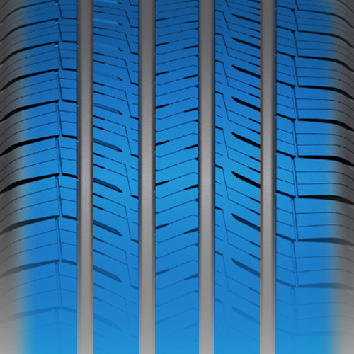 В конструкции предусмотрен усиленный брекерный слой в сочетании с жёсткой бортовой частью, что значительно повышает прочность и устойчивость к деформациям. Такая архитектура положительно сказывается на точности управления, улучшает курсовую стабильность при движении по прямой и позволяет увереннее проходить повороты на высоких скоростях. Кроме того, усиленная структура снижает колебания при маневрировании с полной загрузкой, даря ощущение контроля даже в сложных ситуациях.