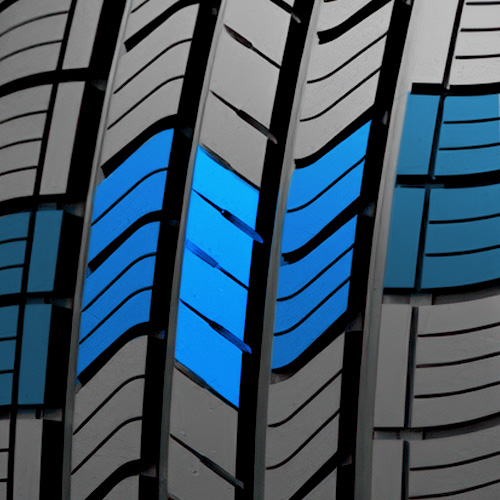 Особое внимание при создании этой покрышки уделено снижению акустического воздействия и вибраций, которые могут возникать при движении на высоких скоростях. Переменный угол наклонов протекторных секций эффективно рассеивает звуковые колебания и способствует более ровному распределению внутриколесного давления, что позволяет сохранить устойчивое направление движения даже при динамичном маневрировании. Эта особенность гарантирует спокойное и предсказуемое вождение на скоростных автомагистралях, где особенно важна стабильность и четкая обратная связь.